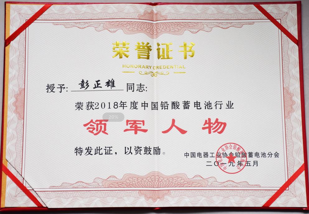 金帆电气集团董事长彭正雄先生荣获“2018年度中国铅酸蓄电池行业领军人物”称号。