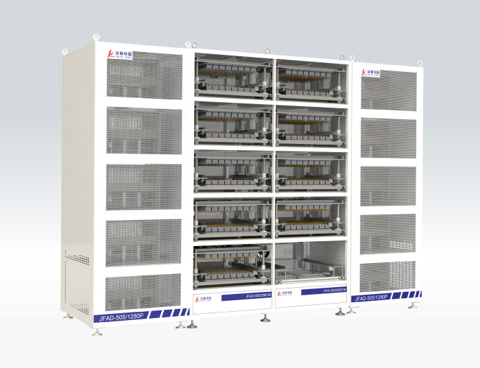 JFAD系列圆柱电池针床式能量回馈型锂电池自动化成设备是用于锂离子电池生产企业的电池开发、生产、测试的专业设备,适用于圆柱类锂离子电池生产过程中充放电化成、分容检测及锂电池性能检测等用途。