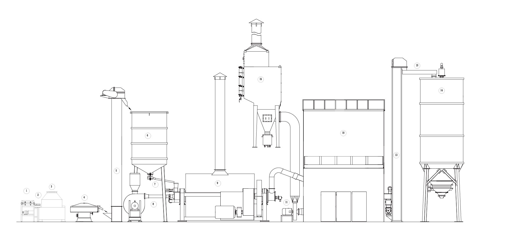 | 1.Lead Ingot Strage Table 2.Lead Ingot Feeder 3.Lead Melting Pot 4.Cylinder Casting Machine 5.Bucket Cylinder Elevator 6.Cylinder Silo 7.Automatic Unloading Unit 8.Positive Blower 9.Main Unit 10.Integrated Baghouse 11.Negative Blower 12.Oxide Elevator 13.Screw Conveyor 14.Oxide Silo 15.Secondary Filter (Selected) |